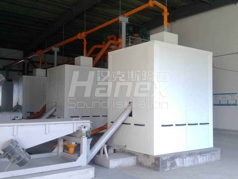 廠區(qū)車(chē)間內(nèi)4臺(tái)破碎機(jī)運(yùn)行時(shí)噪聲量達(dá)到120分貝,影響廠區(qū)環(huán)境和工人工作。漢克斯對(duì)每臺(tái)破碎機(jī)單獨(dú)設(shè)置隔聲罩后,距離設(shè)備一米處測(cè)得噪聲值為80分貝,低于國(guó)家衛(wèi)生標(biāo)準(zhǔn),符合降噪要求。隔聲罩內(nèi)具有通風(fēng)散熱照明功能,能夠保證內(nèi)部設(shè)備的正常運(yùn)行。