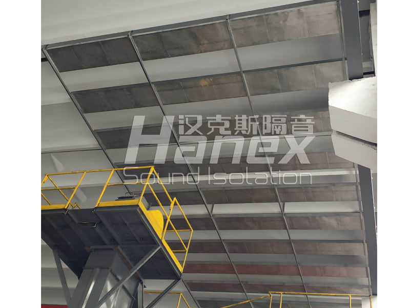 1、經(jīng)杭州漢克斯隔音技術(shù)人員現(xiàn)場(chǎng)踏勘發(fā)現(xiàn),破碎機(jī)生產(chǎn)線工作運(yùn)行時(shí),其產(chǎn)生的噪聲一部分通過(guò)屋面繞射至居民區(qū)。因此,在生產(chǎn)車間內(nèi)的破碎機(jī)正上方區(qū)域設(shè)計(jì)安裝吸音吊頂。