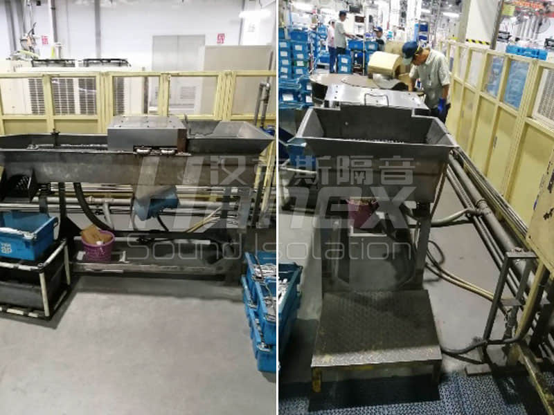 觀(guān)察窗:在隔音罩的進(jìn)料口移門(mén)上設(shè)置1扇塑膠玻璃觀(guān)察窗,玻璃使用橡膠墊保護(hù),同時(shí)輔以玻璃膠密封,為提高隔音量設(shè)計(jì)使用2層有機(jī)玻璃。觀(guān)察窗規(guī)格為:W300×H300mm方便在設(shè)備運(yùn)行時(shí)對(duì)內(nèi)部情況進(jìn)行實(shí)時(shí)觀(guān)察。