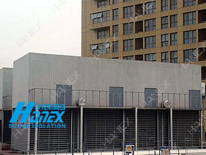 德盈廣場東面3組冷卻塔設(shè)備正常運行產(chǎn)生90-95分貝噪聲,對周邊公寓、酒店、辦公區(qū)造成不良影響。漢克斯隔音設(shè)計1.冷卻塔出風口消聲器,2.冷卻塔四周安裝吸隔聲屏障,工程結(jié)束后敏感區(qū)噪聲測量值低于45分貝。